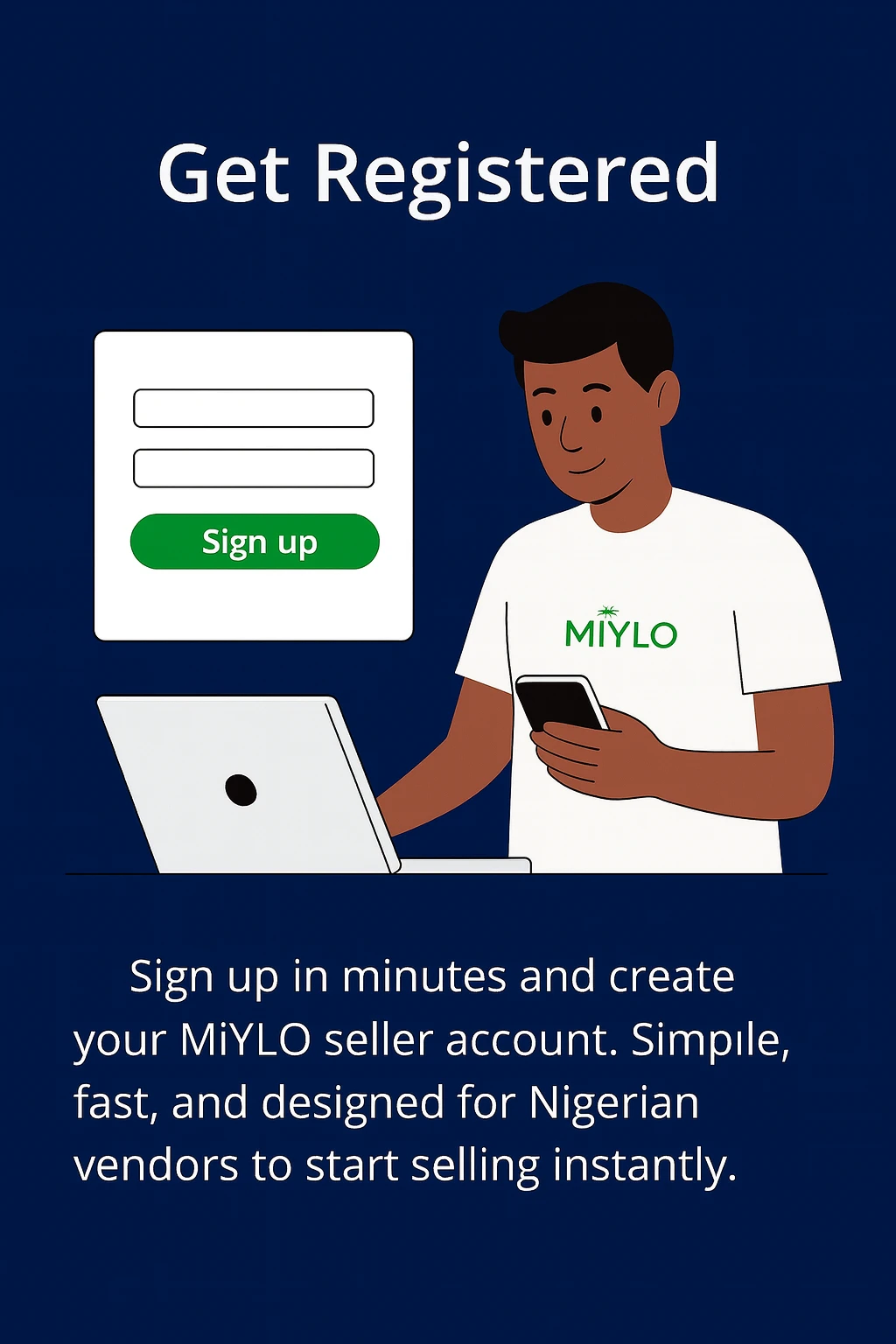 Sign up in minutes and create your MiYLO seller account. Simple, fast, and designed for Nigerian vendors to start selling instantly.