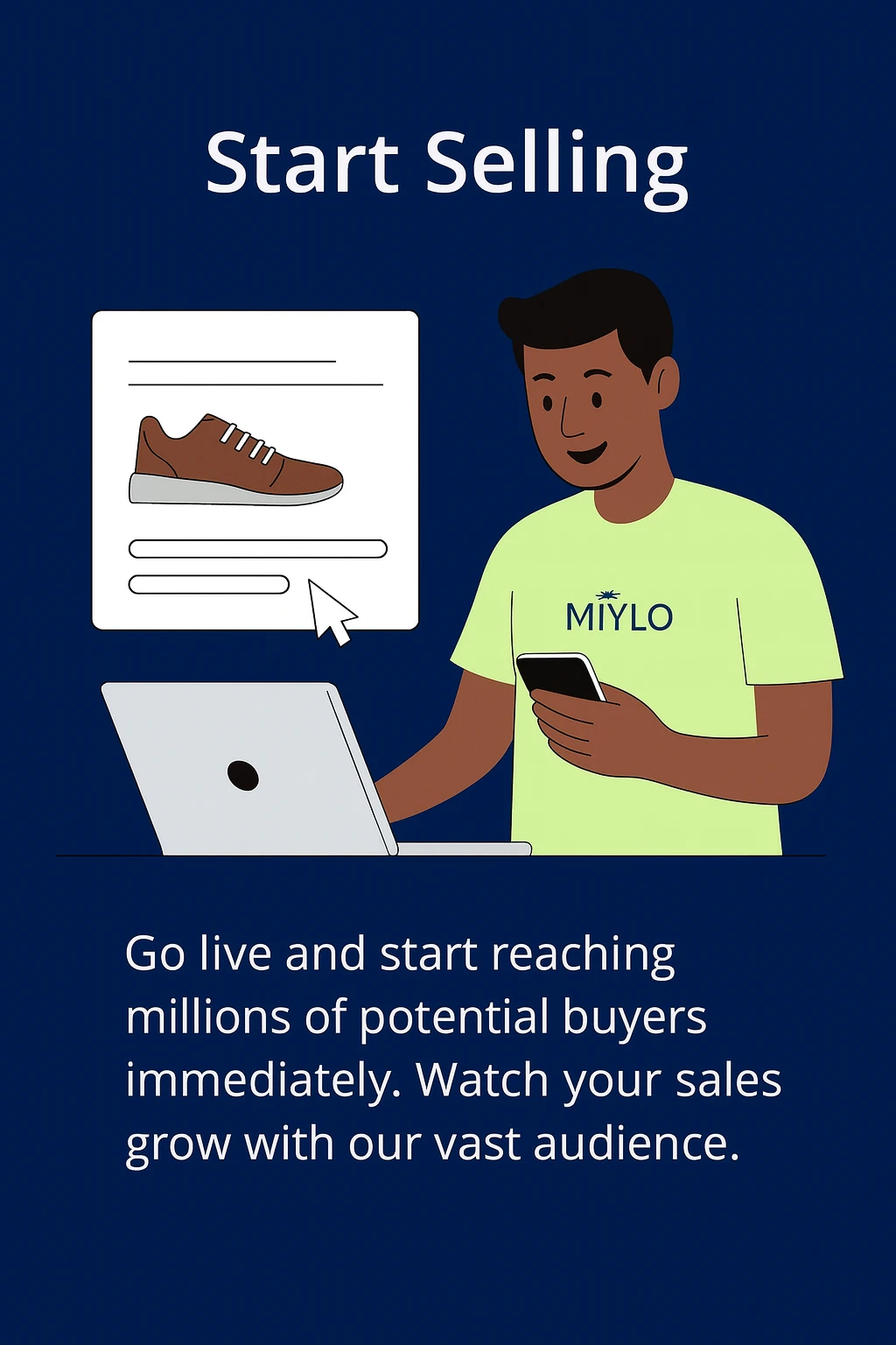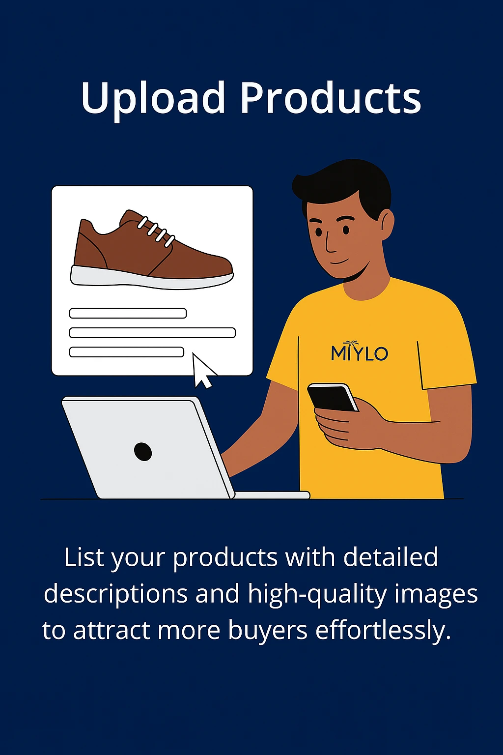 Upload your products with clear descriptions and sharp images to reach thousands of active MiYLO buyers instantly.